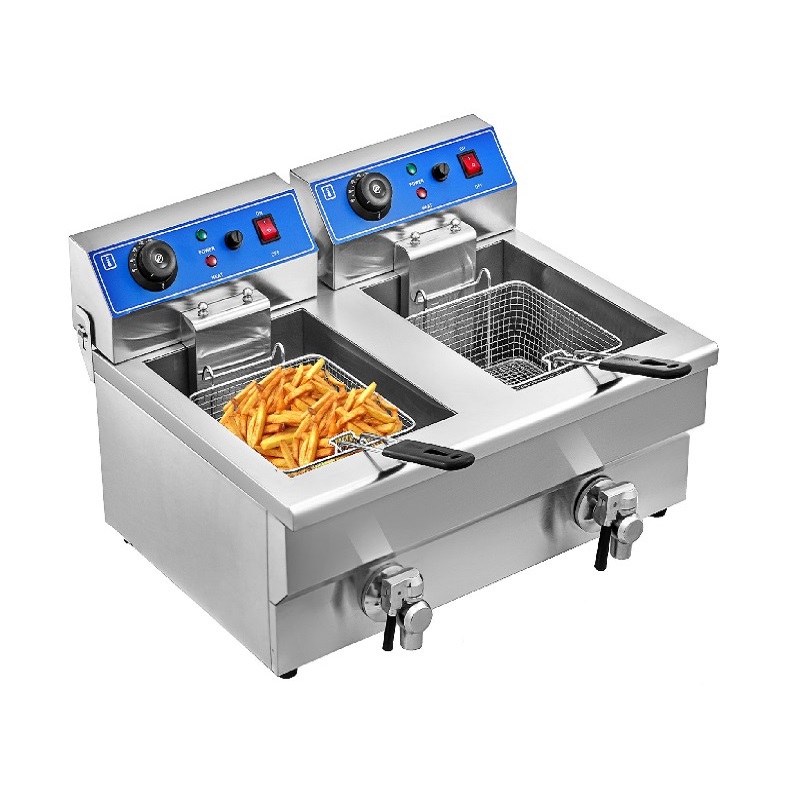 سرخ کن رومیزی برقی دو لگن شیردار دستگاهی اقتصادی و مقرون به صرفه است.